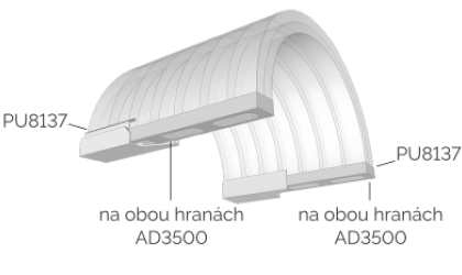 Typ AD3500 je páska vybavena speciálními filtry. Tyto filtry umožňují bezproblémový odvod zkondenzované vody ven z prostoru desky (minimální sklon 5 °).